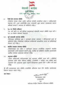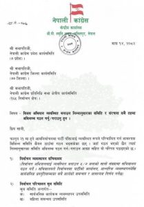 समिति गठन गर्नेबारे कांग्रेसको पत्र :