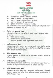 नेपाली कांग्रेस केन्द्रीय समितिले प्रदेश, जिल्ला र क्षेत्रिय समितिहरुलाई पत्राचार गर्दे निर्वाचनसँग सम्बन्धित समितिहरु निर्माण गरेर त्यसको जानकारी केन्द्रलाई दिन पत्राचार गरेको छ । पार्टी उपसभापति विश्वप्रकाश शर्माले हस्ताक्षर गरेको पत्रमा भनिएको छ ‘फागुन २१ हुने आमनिर्वाचनमा पार्टी पङ्तिलाई व्यवस्थितरुपले परिचालित गर्न आवश्यक विभिन्न समिति कैयन ठाउँहरुमा गठन भैसकेका छन् । जहाँ गठन भएको छैन, त्यहाँ निम्मअनुसार समिति अभिलम्ब गठन गर्न÷ गराउनु हुन आग्रह सहित यो परिपत्र पठाइएको छ ।’
