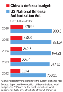 सन् २०२६ का लागि चीनको रक्षा बजेट ७ प्रतिशत, २७५ अर्ब अमेरिकी डलर