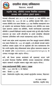 सचिवालयका अनुसार २.०० बजे सिंहदरबारस्थित निर्माणाधीन सङ्घीय संसद् भवनको बहुउद्देश्यीय सभाकक्षमा सांसदहरुको शपथ हुँदैछ  । नेपालको संविधानको धारा ८८ र ९१ को उपधारा ५ तथा प्रतिनिधि सभा सदस्य निर्वाचन ऐन, २०७४ को दफा ७५ बमोजिम आह्वान गरिएको सूचनामा शपथका लागि निर्वाचन आयोगबाट प्राप्त प्रमाणपत्रहित उपस्थित हुन अनुरोध गरिएको छ ।नेपाली भाषा बाहेक अन्य भाषमा सपथ लिन चाहने सांसदरुले सचिवालयले तोकेको व्यहोरमा र भाषालाई आफूले चाहेको भाषमा अनुवाद गरी सचिवालयलाई तिन दिन अगावै उपलब्ध गराउन भनिएको छ ।