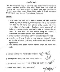 3. सम्माननीय राष्ट्रपति समक्ष सिफारिस भई गएका अध्यादेशहरु संसद छल्ने उद्देश्यका साथ सिफारिस भई आएका हुनाले स्विकृत नगर्न सम्माननीय राष्ट्रपति समक्ष हार्दिक अनुरोध गर्दछौं ।